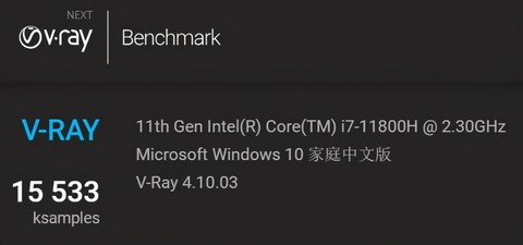 ▲V-Ray处理器渲染基准,i7 10875H理想成绩为12779分,而i7 11800H为15533分,提升幅度21.6%。