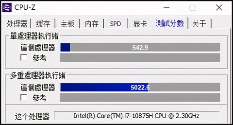 ▲CPU-Z基准测试。单核成绩,i7 11800H跑出了616.6分,对比i7 10875H的542.9分,性能提升比例为13.6%;多核得分是5809.2 Vs 5022.6,提升比例15.6%