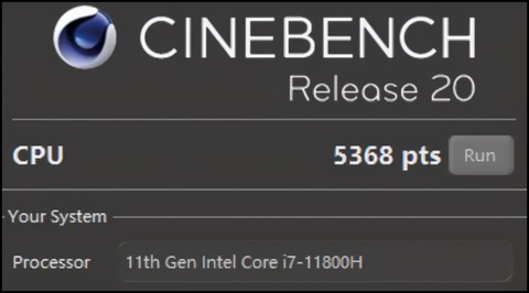 ▲Cinebench R20对比测试,由于其渲染耗时较长,所以更能说明处理器的稳定性能,这个项目上,i7 11800H直接“起飞”,跑出了5368pts的好成绩,领先i7 10875H的比率高达30.7%!