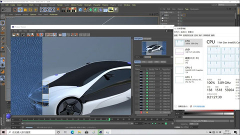 ▲Cinema 4D常见于产品、宣传画、游戏场景和动画的设计及渲染,是一款在全球使用率颇高的建模渲染软件,亦曾是英特尔处理器的弱势项目,非常吃处理器核心数量和频率。我们渲染2秒的汽车动画,每秒25fps,加上首帧,共计51帧画面,总耗时21分31秒。而跑满120W的 i7 10875H在这个项目上的成绩是24分16秒,第11代酷睿H45效率提升了12%左右。可点这里了解其他平台8核处理器的成绩,会发现有趣的事情。