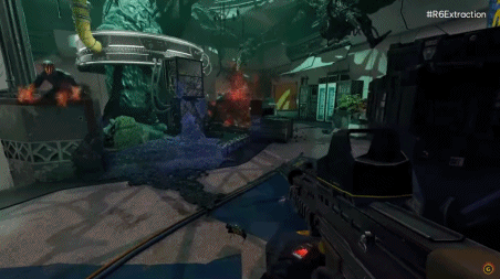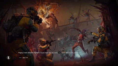 和之前主打多人对战的 《 彩虹六号:围攻 》 不同,这是一款主打 PVE 的三人小队第一人称射击游戏,只不过打的是外形变异生物,说白了就是打僵尸的变体。