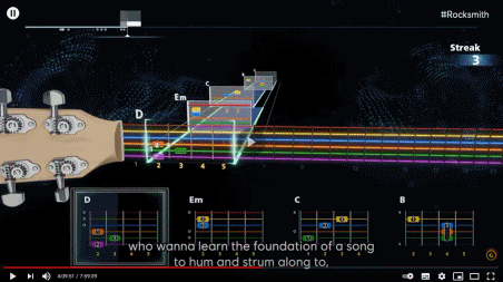 但是跳舞还不够,育碧又整了一个教你弹吉他的软件《 摇滚史密斯+ 》 。