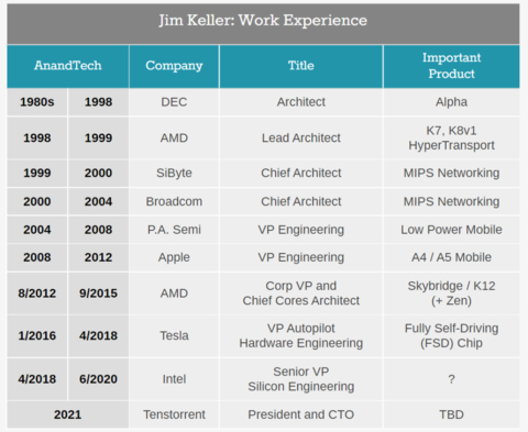 Jim Keller 的职业生涯开始于 DEC,他在那里从事 Alpha 处理器的设计工作,之后在 AMD 工作了两年,推出 K7 和 K8。随后,他又在 SiByte 和博通担任首席架构师、在 PA Semi 担任工程副总裁。2008 年,PA Semi 被苹果收购。