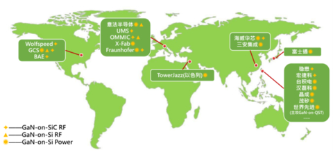 目前基本上都是GaN-on-Si产品,传统硅晶圆Foundry正在向这方面靠拢,包括台积电、世界先进、联电子公司联颖、富士通等,另外则是特种工艺Foundry,例如TowerJazz、X-Fab、海威华芯、三安集成等。