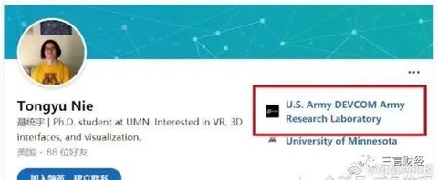 据推特账户信息显示,前任编辑“聂统宇”现在任职于美国陆军研究实验室。