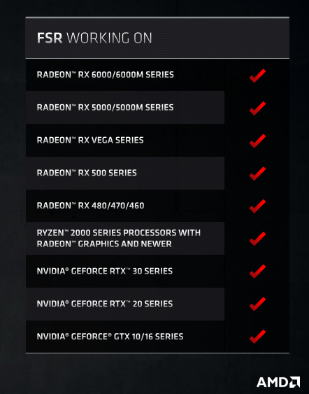 虽然看上去 FSR 的技术好像没有 DLSS 那么精密复杂,但他对于玩家和开发者来说是无疑更为友好。