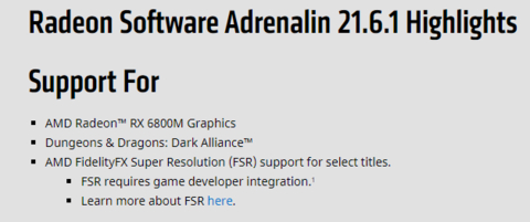 当然, FSR 的更新也不能少了自家的显卡,AMD 官方在 22 号放了一波驱动更新,在更新说明里解释了这事儿。