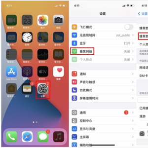 打开手机桌面的设置,找到并点击“蜂窝网络”,在蜂窝网络界面,我们能看见“蜂窝数据选项”。