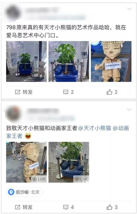 当有网友到798去求证,发现他在视频里提到的艺术作品,还真就放在那个位置……