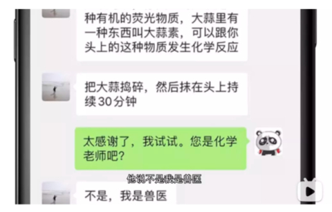 万万没想到,他的头发到最后从发蓝光变为发绿光,同时还多了一股腊八蒜(醋+大蒜=腊八蒜)的味道。