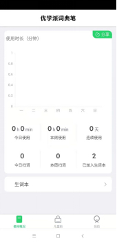 除了本身的查词功能,优学派P6还可与手机进行绑定。但需要看到的是,APP更多是管控功能,首页展示词典笔的使用时间,第二页则是儿童锁功能,可以关闭词典笔的语音查询等功能,避免孩子在学习过程中投机取巧。而与学习相关的生词本功能放到了二级页面。