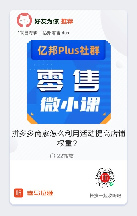 好啦,今天的音频课程就到这里啦。你的拼多多店铺权重提升最快的一次经历是什么样的?这样的经验实现多次复制了吗?来群里告诉我们吧。