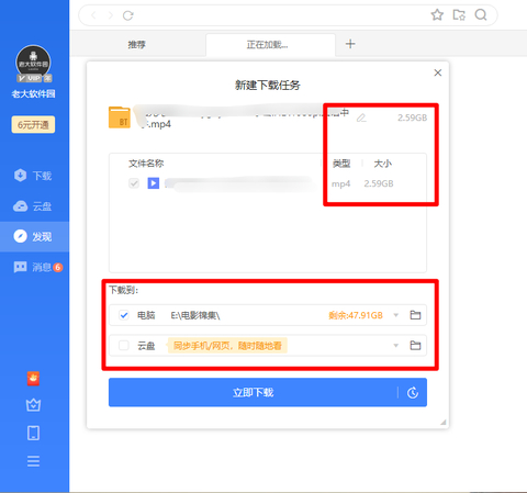 我随便从网上找一部电影,使用迅雷下载,可以发现有两种方式选择,要么下载到电脑上,要么保存到云盘,或者同时选择。