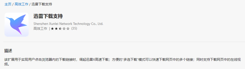 可以看出,该扩展用于实现用户点击浏览器内的下载链接时,调起迅雷X高速下载;方便“多选下载”模式可以快速下载网页中的多个链接;同时支持下载网页中的在线视频。