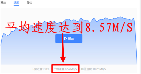 很清楚地看到,其下载平均速度在8.57M/S左右,可以说将近2.6GB的视频5分钟下载完毕,可以说速度已经不慢了。