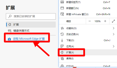 首先,打开浏览器后,找到“扩展”,进去后,再点击“Microsoft Edge”扩展,然后直接搜索“迅雷支持下载”即可。