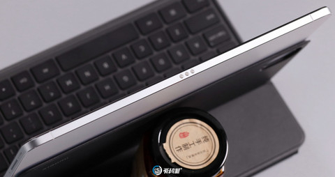 上下边框有4排扬声器开孔,加上杜比信仰标,这是一台爱奇艺平板隐藏不住的狂放。左边框有键盘盖的触点,右边框有手写笔的磁吸模块。让人不解的是,为什么平板要搞4个麦克风开孔?(右边框2个,上下边框各一个)