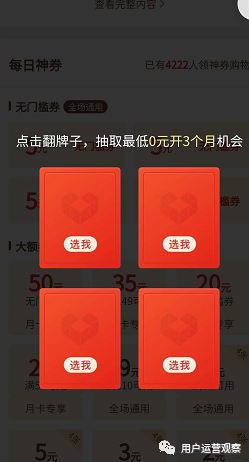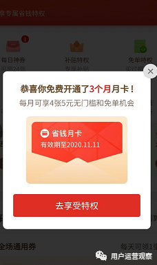 平台通过发放月卡锁定一批价格敏感极易流失的用户群,从而提升用户的复购次数。