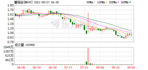 蘑菇街今日发布公告,宣布其董事会已授权一项新的股份回购计划,公司有权回购最多1,000万美元的股份,有效期至2022年8月26日。公司预计将用其现有现金余额为该计划下的回购提供资金。截至周四美股收盘,蘑菇街报0.99美元,总市值为9901.72万美元。
