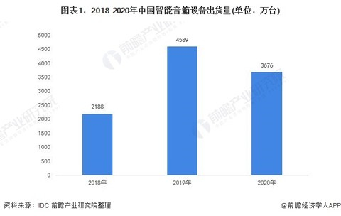 随着人工智能席卷各行各业和语音交互快速普及,据全球著名市场研究机构IDC《中国智能音箱设备市场月度销量跟踪报告》数据显示,中国智能音箱市场在2019年经历了爆发式发展,2019年智能音箱市场出货量达到4589万台,同比增长109.7%。2020年中国智能音箱出货量为3676万台,受疫情影响较大出现下降。