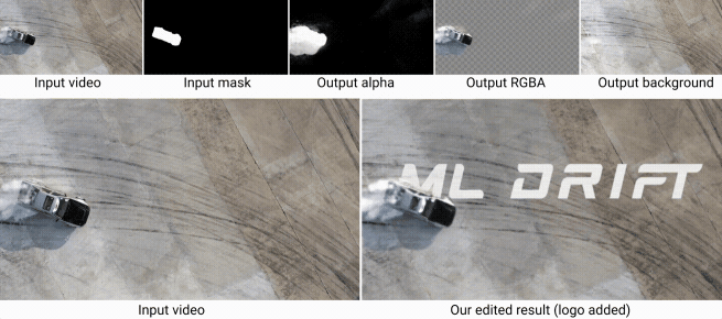 与分割遮罩(segmentation masks)不同的是,omnimatte能够捕捉部分透明的柔和效果,比如反射、飞溅或轮胎烟雾。与传统蒙版一样,omnimatte是 RGBA 图像,包括一个alpha 通道。