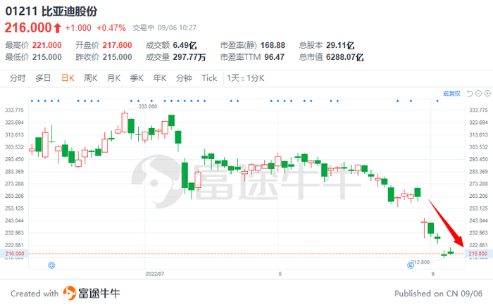 截至发稿,$比亚迪股份(01211.HK)$从上周三至今累计下跌近18%,市值蒸发超1000亿港元。