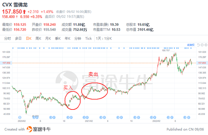 也有一些股票,巴菲特减持后又会重新买入。巴菲特于2020年第四季度首次投资美国石油巨头$雪佛龙(CVX.US)$。此后,石油行业和巴菲特持有的雪佛龙股价一路攀升。