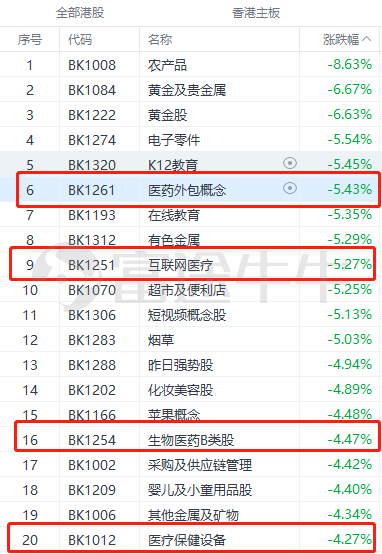 港股相关医疗板块跌幅居前。