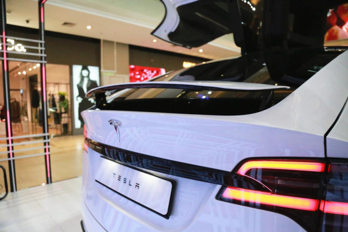 车尾造型尾灯组内部的C字形灯带得以保留,Tesla的英文标识采用了黑色处理,上方的小尾翼设计,加上下方熏黑式处理的后包围,提升了整车的高级感。