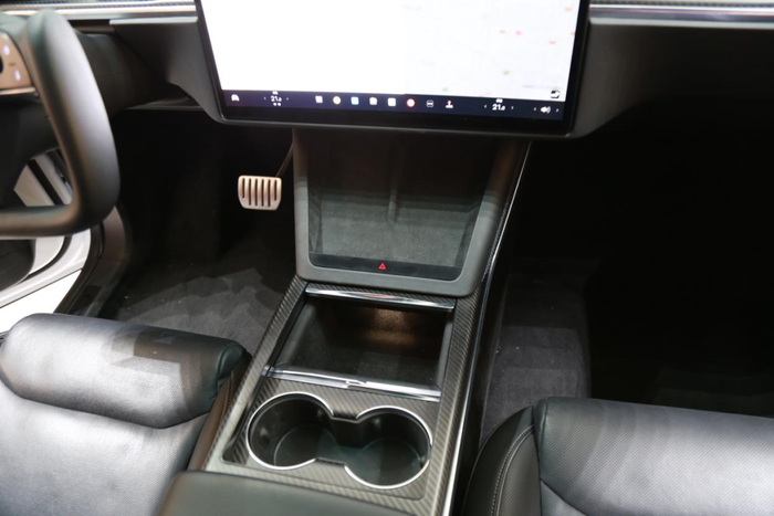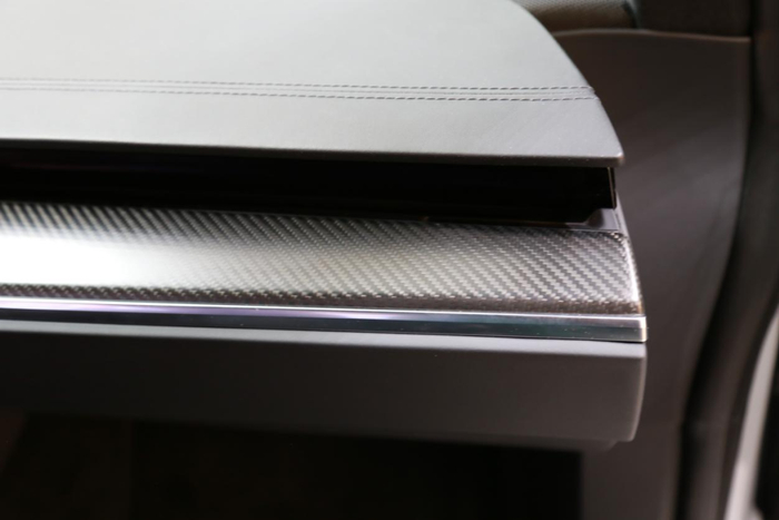 内饰用料方面,Model X Plaid没有像3和Y显得那么中庸,采用了大面积的软质材料包裹,并且在细节处加入碳纤维以及翻毛皮等提升运动氛围的材料。
