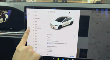 第一,在中控屏幕左侧区域,通过手势滑动,来完成挂挡,向上前进,向下倒车,如果想要完成驻车,在屏幕左上角点击一下即可。