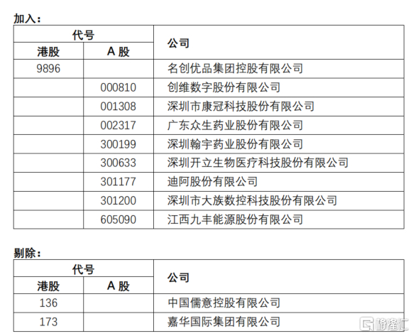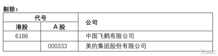 恒生沪深港通大湾区综合指数成份股将有以下的变动,成份股公司数目维持 250只。