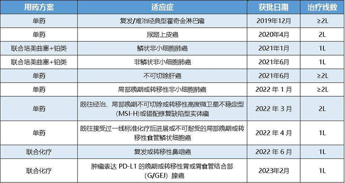 以其获批的第一项适应症以及最新获批的一线治疗PD-L1高表达的晚期或转移性胃或胃食管结合部腺癌为例。替雷利珠单抗于2019年12月获得国家药监局附条件批准上市,用于治疗至少经过二线系统化疗的复发或难治性cHL(晚期经典霍奇金淋巴瘤)患者。