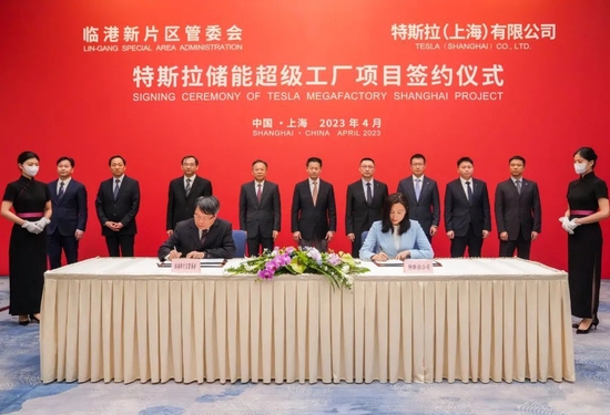 4月9日,特斯拉储能超级工厂签约仪式在上海举行。图/新华