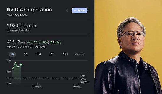 然后在周二美股开盘之际,英伟达冲破1万亿美元市值关卡,开创了芯片产业的又一里程碑!