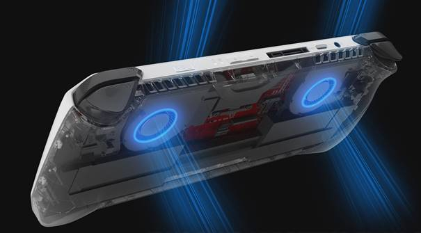 ROG掌机搭载冰川散热架构掌机版,采用双风扇设计,相比其他同类产品采用的单风扇结构,风力更大,散热效率更高。风扇采用液态轴承设计,稳定性高,噪音更低。定制的热管专为掌机使用情景优化,热管内部毛细结构经过重新排列,相比普通热管可增加18%毛细作用,无论坐着玩,趴着玩,躺着玩,都不影响散热效率。出风口覆盖0.1mm冰翼鳍片,表面积更大,散热效率更佳。室温23℃情况下,握持区域仅30-33℃,配合608g的轻量化机身设计,即使是持久游戏,双手也不会感到不适。