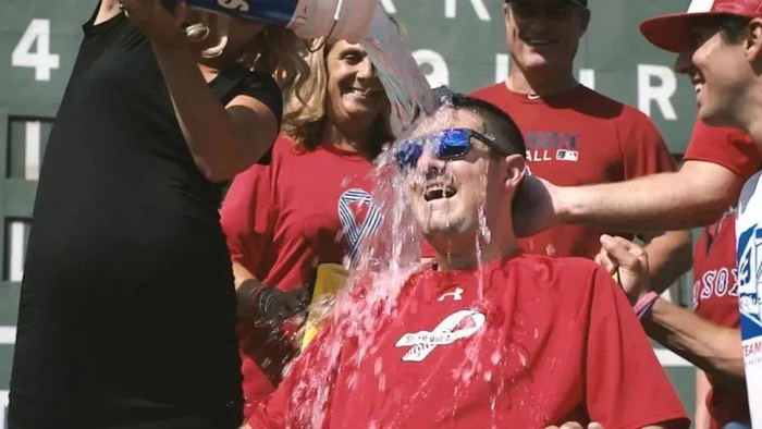 它的发起人叫皮特·弗雷茨是一名著名的棒球手,挑战的目的就是让普通人感受到渐冻症患者的痛苦。他在当时已经被确诊患了渐冻症,四肢肌肉萎缩,只能坐在轮椅上行动。