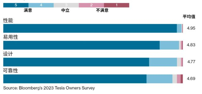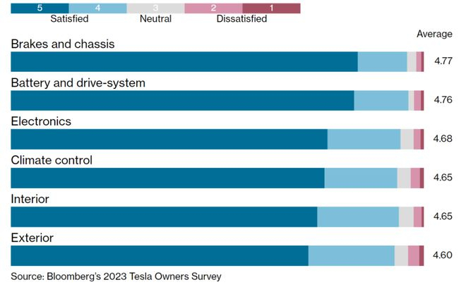 接下来,特斯拉车主对可靠性、服务、电池和驾驶体验进行了评估。