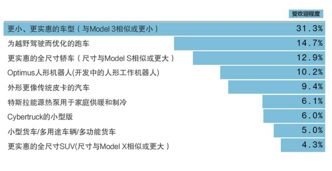 计划在未来两年内购买新车的Model 3车主中,有近75%的人正在考虑购买另一辆特斯拉。以下是他们的首选:
