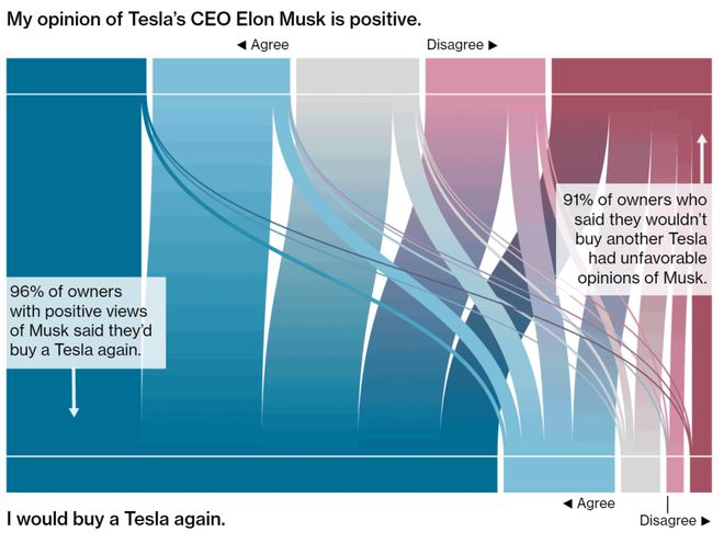 特斯拉车主对马斯克的看法与他们是否会继续使用这个品牌之间存在着明显的关系。