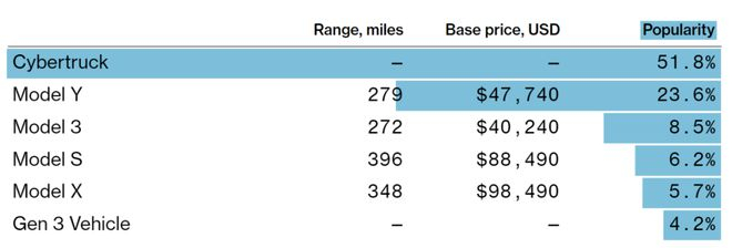 对Cybertruck的兴趣高居榜首