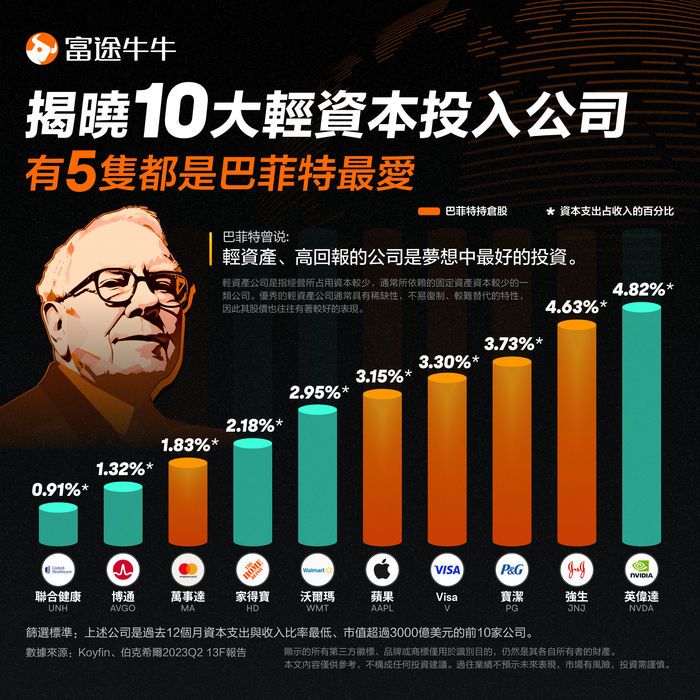 一图揭晓10大轻资本投入公司!有5只都是巴菲特最爱