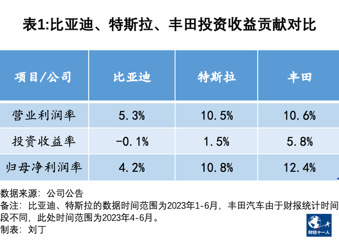 特斯拉和比亚迪,没有如此大的投资收益来增厚业绩。比亚迪海外市场建设刚刚起步,还没有大型合资公司可以提供投资收益;特斯拉的收入都是直营收入,直接计入报表,除了碳汇交易外,也没有其他大额投资收益。