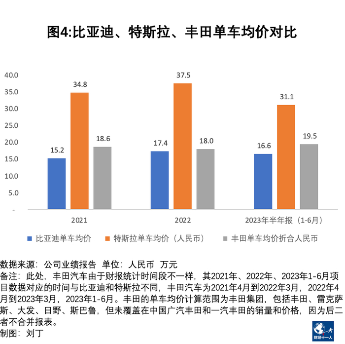 汇率:日元与美元之间的汇率,按照丰田汽车财报中给出的汇率计算,即2021年1美元兑换112日元,2022年1美元兑换135日元,2023年上半年1美元兑换132日元;美元与人民币之间的汇率,按照2021年初以来的平均值计算,1美元兑换约6.9元人民币。