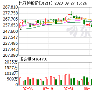 股价方面,比亚迪股价今年以来表现偏震荡。截至9月26日收盘,比亚迪A股报收238.5元/股,H股报收239.2港元/股,总市值超6700亿元。