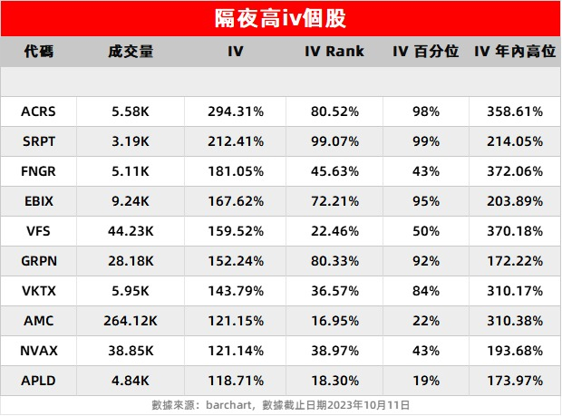 1、Aclaris$ACRS 、Sarepta$SRPT 隔夜隐含波动率扩大至200%以上,接近年内高位。
