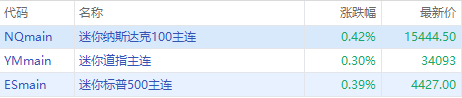 周四美股盘前,三大股指期货小幅上扬,截至发稿,纳指期货 $NQmain 现涨0.42%,标普500指数期货 $ESmain 涨0.39%,道指期货 $YMmain 涨0.3%。