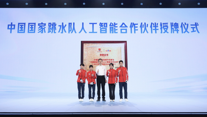 同时,中国国家跳水队教练、奥运五金王陈若琳和奥运冠军全红婵、陈芋汐、王宗源也来到世界大会现场,与王海峰热切互动,解密梦之队训练“独门绝技”。基于文心一言等百度大模型技术,中国国家跳水队AI辅助训练系统全面升级,通过从海量数据和知识中学习,掌握了丰富的跳水知识,理解和执行教练员和运动员的复杂指令,及时提供准确信息,并对动作实时打分、精准量化分析,提供最有价值的指导信息,助力中国国家跳水队高效训练。