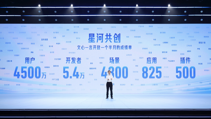 10月17日,在百度世界2023上,百度首席技术官王海峰表示,文心大模型4.0的理解、生成、逻辑、记忆四大能力都有显著提升,9月已开始小流量上线,过去一个多月效果又提升了近30%。8月31日文心一言面向全社会开放至今,用户规模已经达到4500万,开发者5.4万,场景4300个,应用825个,插件超过500个。