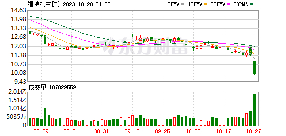 自罢工开始后,三家汽车工厂股价下跌更加明显。其中,福特汽车股价下跌幅度超过20%,就在福特和UAW达成协议后,福特汽车的股价更是连续大幅下跌,其中周五一天下跌12.29%,市值一天损失超过40亿美元。
